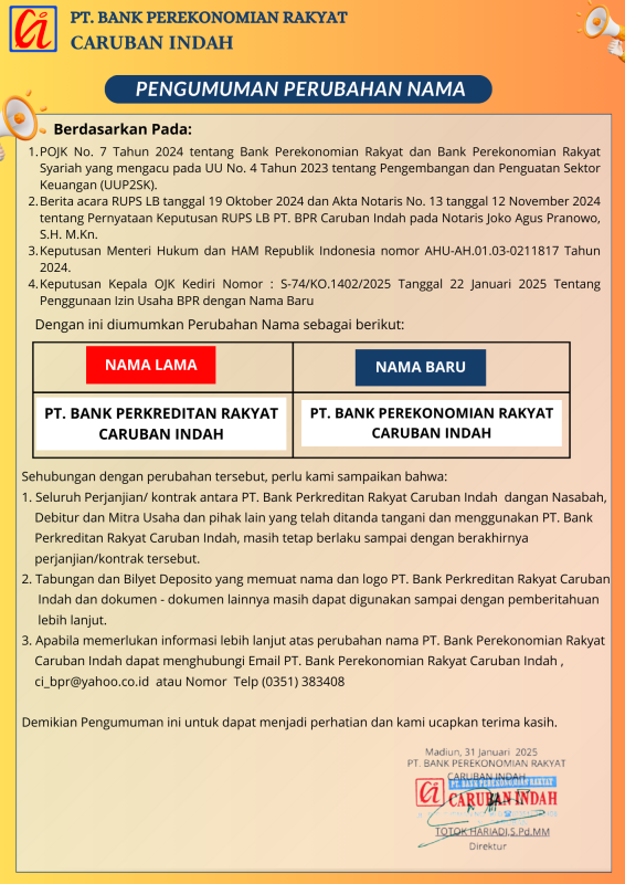 Dapatkan info terkini dari BPR CARUBAN INDAH di inbox email Anda.